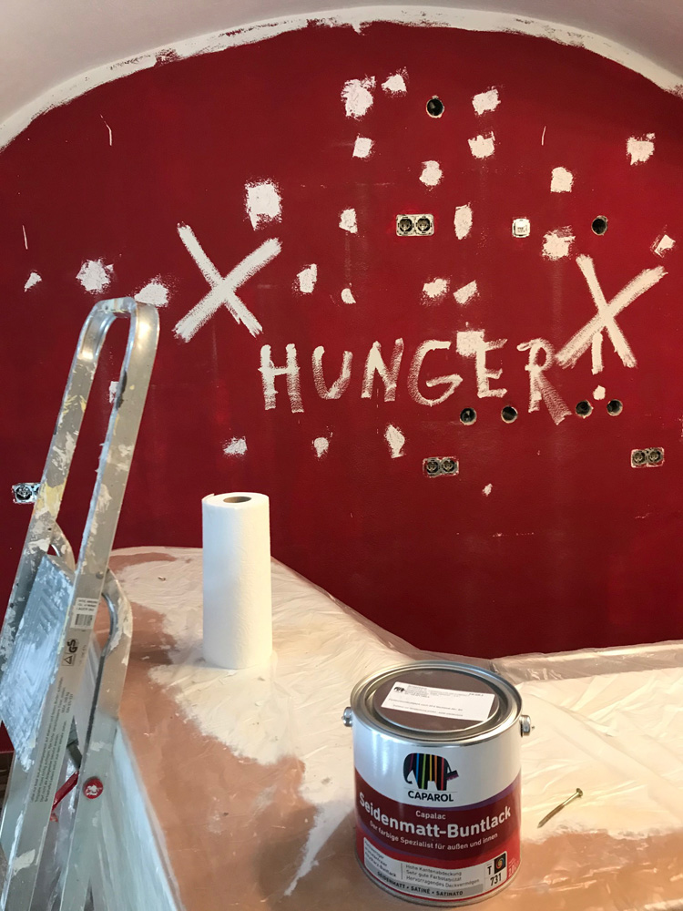 Neue Farben braucht die Wand. Zwar lautet das Motto in der Kulturbranche nun schon seit längerem „Alarmstufe Rot“, doch deswegen die Wände in jenem satten Rot zu lassen, was uns das vorherige Etablissement vererbt hatte, ginge dann doch etwas zu weit. Deshalb: Abkleben. Anrühren. Anstreichen. Die drei großen A. Und das nun schon seit vier Wochen. Denn während zu normalen Zeiten das Ganze mit einem Dutzend Helferlein in nur wenigen Tagen erledigt wäre, dauert es in coronabedingten Einer- und Zweier-Schichten doch um einiges länger. Zumal immer wieder Koordinations- („Es gibt zwei graue Lacke?“) und Klärungsbedarf („Die Barhocker aus der Kämmereigasse? Du willst die echt entsorgen?“) besteht.
