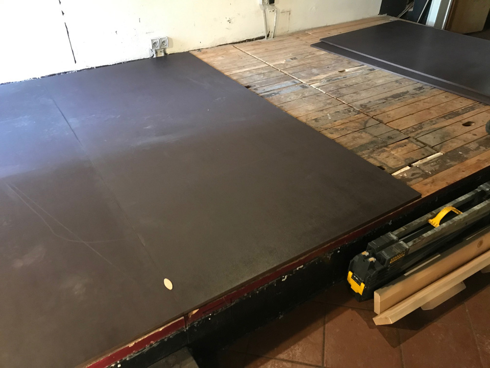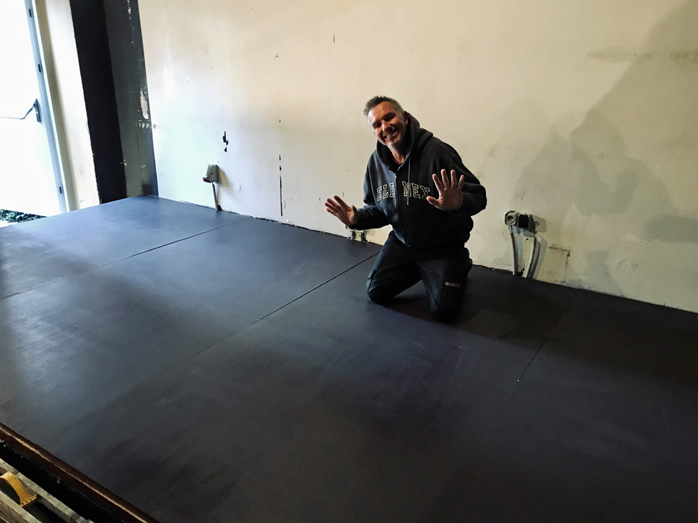 Doch die Wände sind nicht das Einzige, was im Gerberhaus ein komplettes Make-over erhält. Ein Schaukasten für den Eingangsbereich? Check. Eine neue Bühnenoberfläche? Check. Ein neuer Bühnenvorhang? Check. Der Vorher-Nachher-Vergleich lässt sich am besten an den Heizkörpern ablesen, nachdem diese einer stundenlangen Ganzkörperbehandlung unterzogen wurden. Und so gewinnt Schritt für Schritt die NEUNEINHALB im Gerberhaus langsam an Konturen, getragen von einer unglaublichen Vorfreude auf alle Veranstaltungen, die hier in den kommenden Jahren stattfinden werden. Eine Vorfreude, die wir übrigens auch mit dem ehemaligen Podiumswirt Alex Geminn teilen, der uns bereits einen Besuch abgestattet und dabei versprochen hat, mal wieder selbst hinter der Bar stehen zu wollen. Ein Kreis schließt sich.