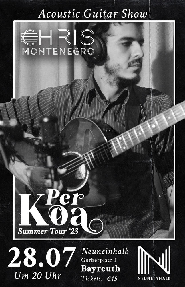 Organizer's other eventsEine wirklich einzigartige Gitarrenshow: Percussion-Guitar, Musik aus Costa Rica, Fingerstyle-Guitar und ein paar Hits aus den 80ern, alles nur mit einem Instrument gespielt. Chris Montenegro schafft es immer, durch sein innovatives Spielen, das Publikum in seine Bahn zu ziehen, denn er erzählt uns auf der Bühne die Geheimnisse einer Gitarre.